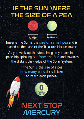 If the sun were the size of a pea, how many peas away is the Andromeda galaxy?