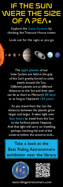 This was our first experience of putting on a large public exhibition. Initially the exhibition was to last just three months, but in the end we had almost a year in which to bring star gazing and our Club to the attention of residents and visitors to Beverley.